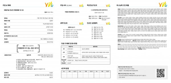 - 중보기도: 매주 수요일 오전 10시, 매주 주일 3부 예배 후 / 2층 기도실