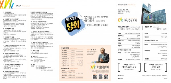 - 세례교인 가운데 2004년생까지의 입교인은 당회에 반드시 참석하시기 바랍니다.