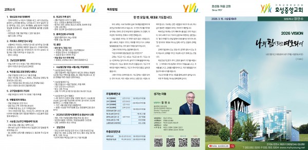 - 기타 지하주차장 청소, 차선도색, 나무전지 등 교회 내·외부 환경을 정리 정돈할 예정이니 성도들의 많은 참여 바랍니다.