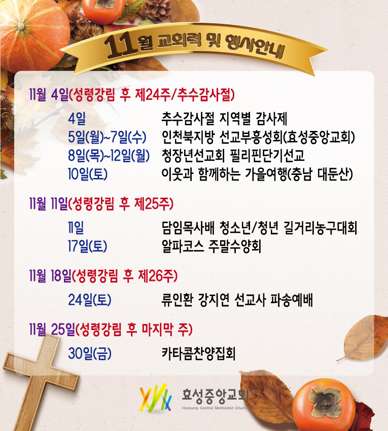 11월 교회력 및 행사안내 페이지 정보 작성자 HYSUNG 댓글 0건 조회 1,215회 작성일 18-11-01 19:35 본문 11월 교회력 및 행사안내 SNS공유 목록 이전글 이웃과 함께하는 가을여행 다음글 10월 교회력 및 행사안내 댓글목록 댓글목록 등록된 댓글이 없습니다.